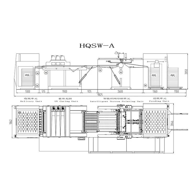 Polno servo UV-sušilni sitotiskarski stroj HQSW-A je posebej zasnovan za vrhunsko proizvodnjo embalaže. Široko se uporablja pri tiskanju vrhunskih darilnih škatel, škatel za mesečne torte, embalaže za tobak/alkohol in podobnih izdelkov. Z znatnim izboljšanjem teksture in vizualne privlačnosti izboljšuje prefinjenost izdelkov, zaradi česar je optimalna izbira za tiskarska in pakirna podjetja.